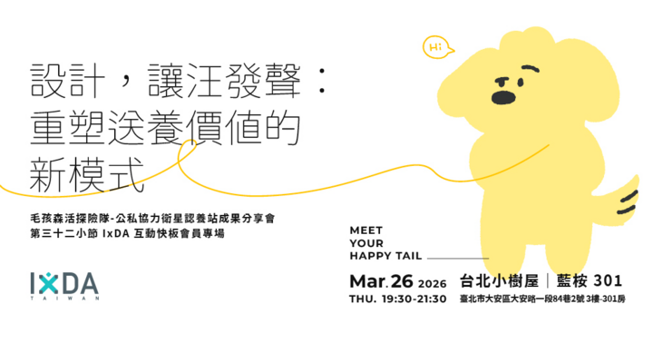 第三十二小節 IxDA 互動快板:設計,讓汪發聲 - 重塑送養價值的新模式分享會 (會員專場)